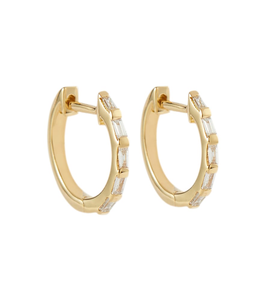In a hoop-style silhouette the label dubs ‘Huggies’, these earrings from SHAY Jewelry are made from 18kt yellow gold. Shay Jewelry 18kt yellow gold hoop earrings with diamonds