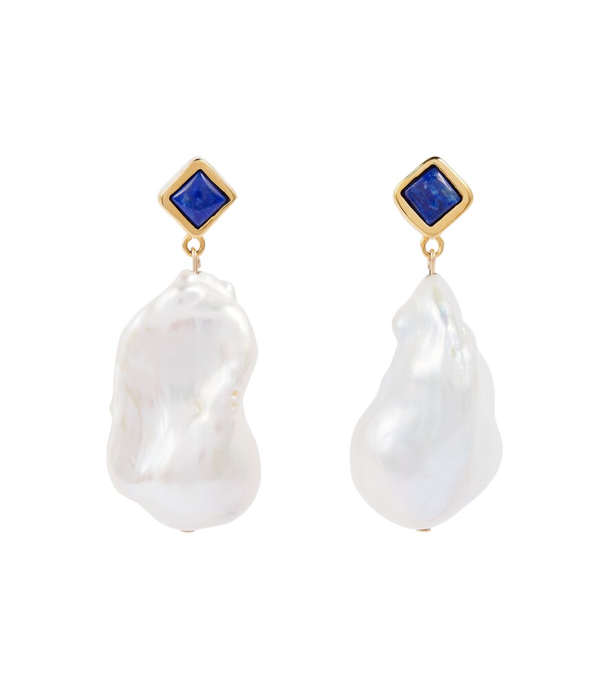 The Mer Large earrings from Sophie Buhai are inspired by the colors of the ocean. Sophie Buhai Mer Large 18kt gold earrings with lapis and baroque pearls