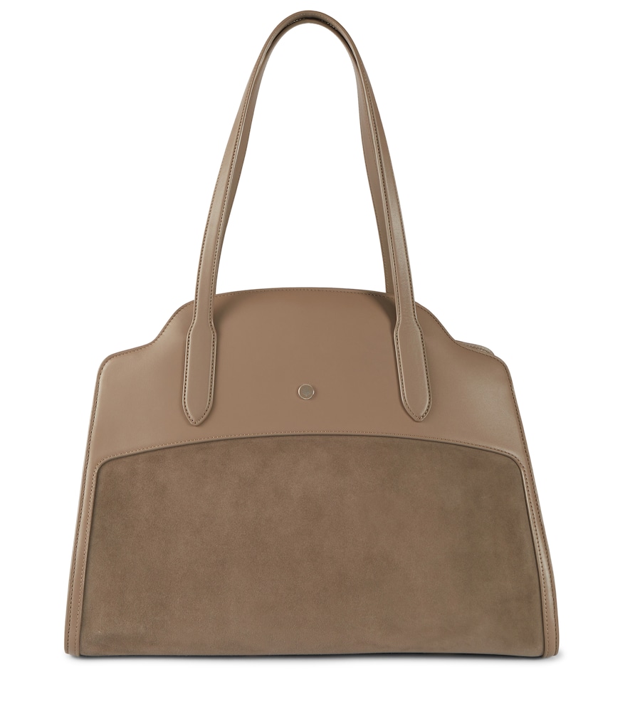 The elegant brown Sesia XL tote is named after the Sesia river that passes through the label’s founding town and factory in Italy. Loro Piana Sesia XL suede and leather tote