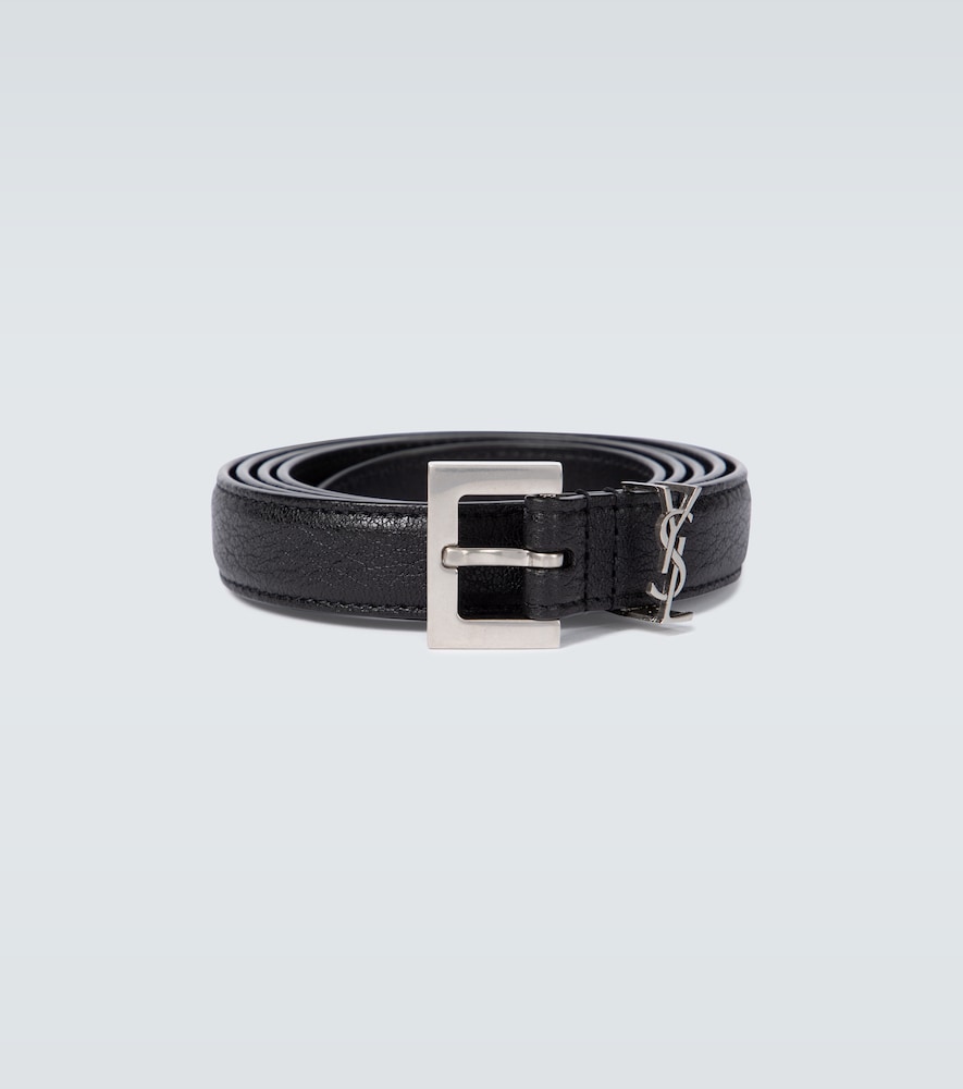 In a skinny silhouette, this black belt from Saint Laurent is accented by a metal “YSL” logo detail, which appears by the buckle in silver-tone. Saint Laurent YSL leather belt